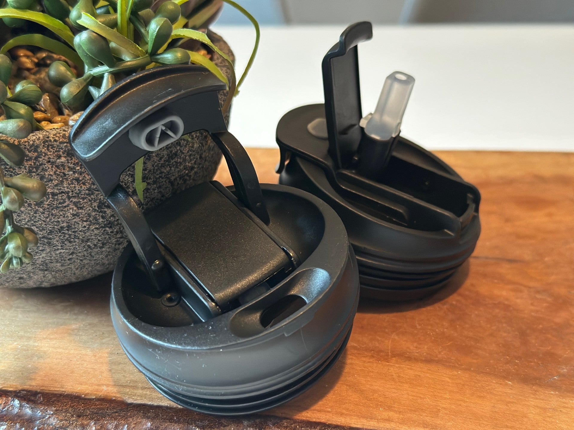 Un coté avec ouverture pour boire facilement plus style café et un coté avec un bec pour boire de l'eau.